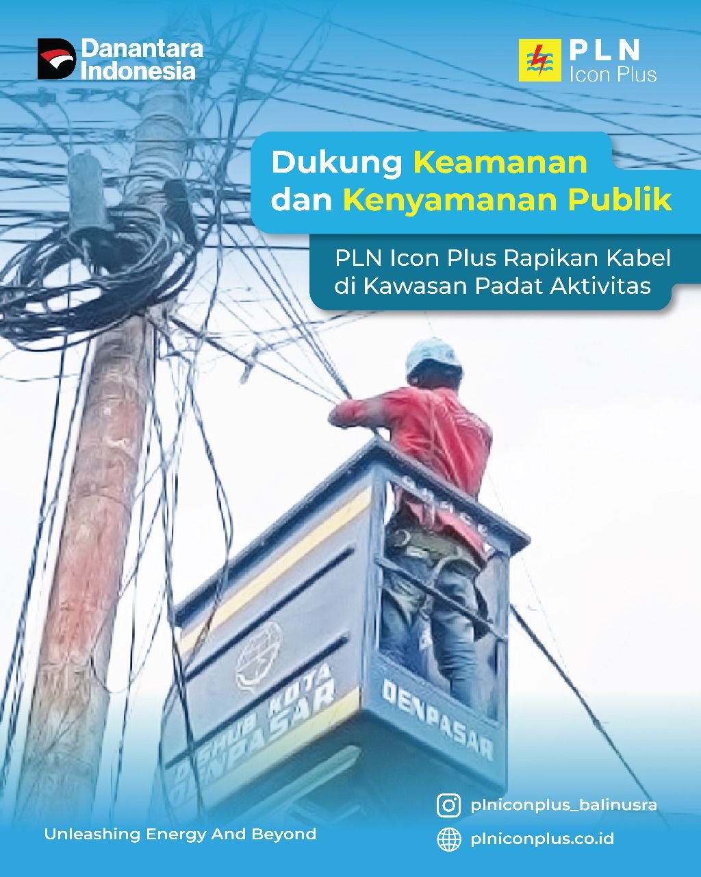 PLN Icon Plus SBU Regional Bali dan Nusa Tenggara melakukan kegiatan perapihan kabel di area Gedung Graha Yowana Suci Art and Community Hub sebagai bagian dari komitmen dalam menciptakan infrastruktur jaringan yang lebih tertata, aman, dan estetik. Langkah ini diambil untuk menjawab tantangan di area dengan tingkat aktivitas tinggi dan kepadatan kabel yang kompleks, guna mendorong terciptanya lingkungan yang lebih tertib serta mendukung keindahan tata kota.