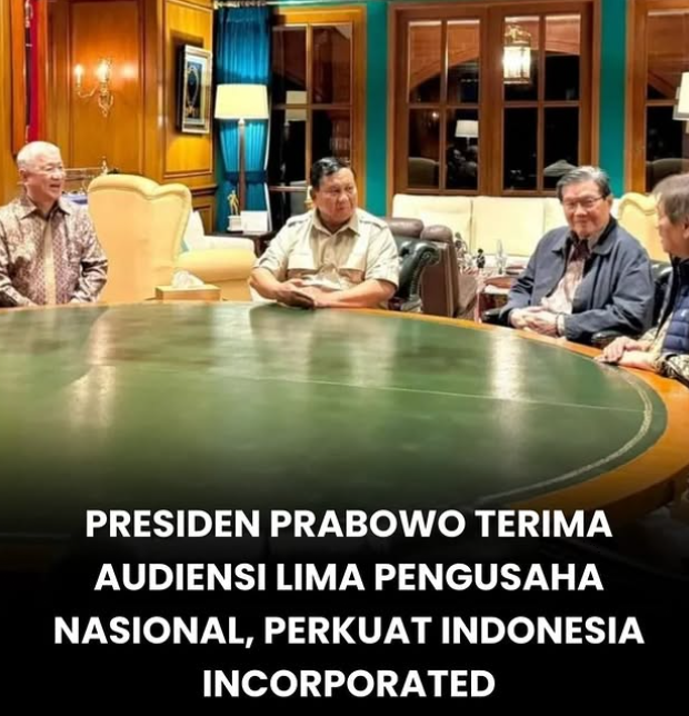 Presiden Prabowo Subianto menerima audiensi lima pengusaha nasional di Padepokan Garudayaksa, Hambalang, Bogor, Jawa Barat, pada Selasa (10/2) malam. Pertemuan yang berlangsung sekitar empat jam tersebut membahas berbagai isu strategis, dengan fokus utama pada penguatan kolaborasi antara pemerintah dan dunia usaha melalui konsep Indonesia Incorporated.